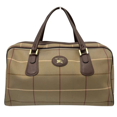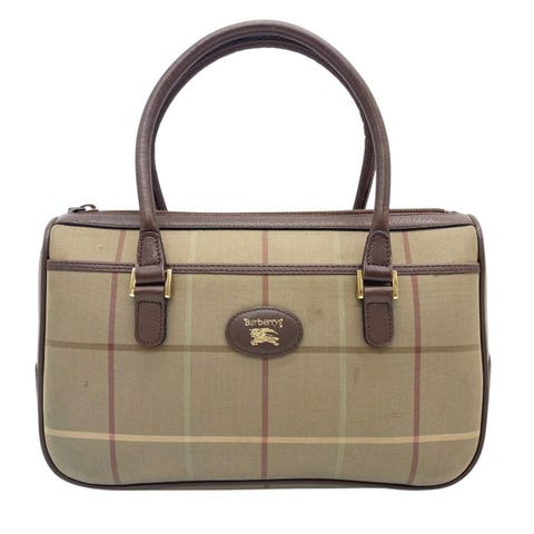 Burberry - Brown Pebbled Leather Handbag with Check Lining, Gold-Tone Hardware &
