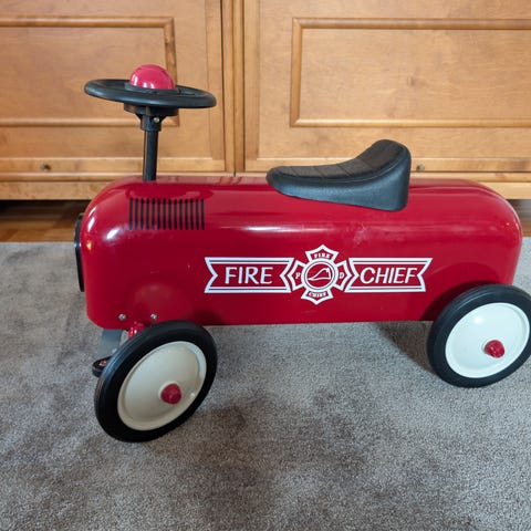 Täysin ehjä ja hyväkuntoinen potkuauto seuraavalle leikkeihin.
