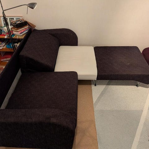 Päällisissä hiukan kulumaa ja sohvassa hiukan jälkiä.
