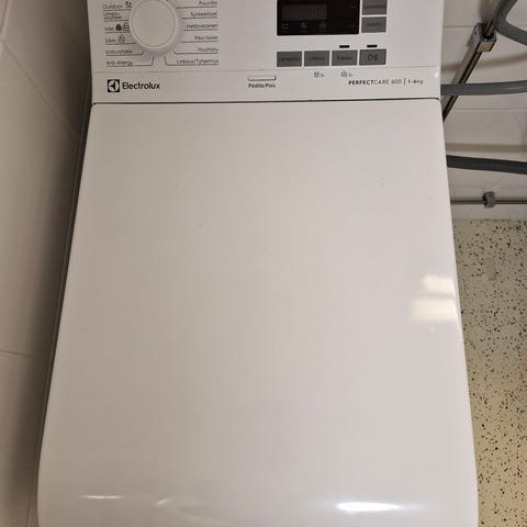 Siistikuntoinen ja ongelmitta toimiva Electroluxin pesukone, 1-5kg. Ohut malli, täydellinen pieneen tilaan. Leveys 60 cm, syvyys 38 cm (ilman luukkua). Juuri päällisin puolin puhdistettu. Mukaan tulo-ja poistoletku ja virtajohto.