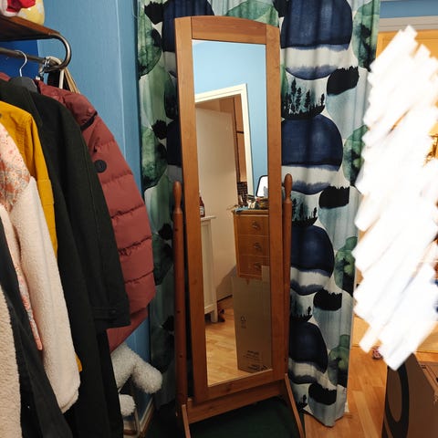 uudenveroinen iso valkokehyksinen peili. Koko noin 58 x 118 cm.