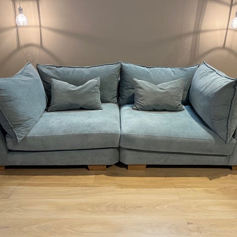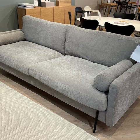Sohva on verhoiltu vaalealla Sense-verhoilukankaalla, joka on 90 % polyesteristä ja 10 % nylonista valmistettu pehmeä ja kestävä chenillekangas. Sohvan runko on koivuvaneria, massiivipuuta ja kalustelevyä. Sohvan istuimessa on no-sag-jousitus ja pehmusteena kylmävaahto kuituvanulla päällystettynä. Selkänojan pehmusteena on silikonisoitu polyesterikuitu 3-kanavaisissa pusseissa. Sohvan istuin- ja selkätyynyt ovat irralliset. Sohvassa on mustat puujalat.