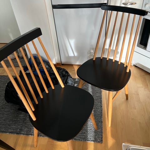 3 näistä ollut käytössä ja kolme ollut ullakolla varastossa (kylmä tila). Joistain tuoleista puuttuu ruuveja. Istuinosat pitäisi olla kauttaaltaan ehjät.