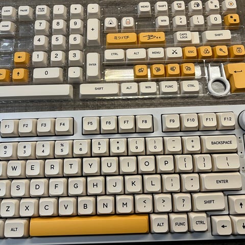 Käytetyt näppäinhatut Wooting 60HE+ näppäimistölle. Käyvät myös muihin 60% näppiksiin. Läpinäkyvät kirjaimet
