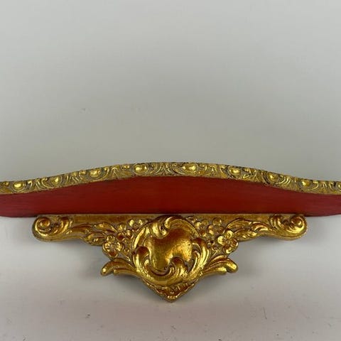 Hämmästyttävän kaunis, erittäin koristeellinen ja hyvin hurmaava käsin veistetty puinen seinäkonsoli. Kappale on kauniisti suunniteltu ja valmistettu erinomaisella laadulla ja huolellisesti. Kappaleessa on kaksi melko vähäisesti kiertyvää pylvästä. Puun väritys on todellakin sensaatiomaisen upea alkuperäisellä patinalla.Mitat: korkeus 48 cm, leveys 20 cm, syvyys 6 cm SethTuote lähetetään rekisteröidyllä lähetyksellä.