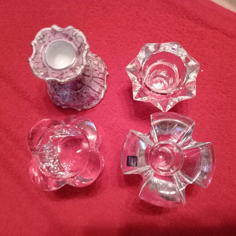 Näyttävän näköinen lasi kynttelikkö sarja + kaksi pöytä valaisinta.