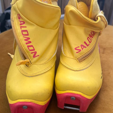Salomon hiihtokenkä, koko 39 1/3 (24,5 cm). SNS-kiinnitys. Sisältä ehjät. Vetoketjut kunnossa. Ulkopohjassa kulumaa, mutta ei vaikuta käyttöön.