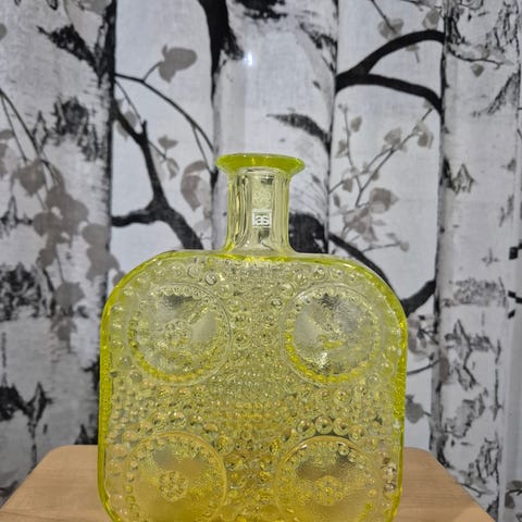 Nanny Stillin suunnittelema, Riihimäen lasin, keltainen Grapponia malja. Korkeus 17cm, halkaisija 16cm