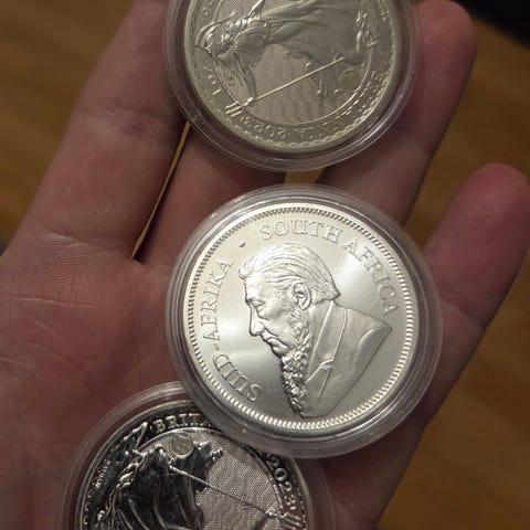 Myydään 36 unssia hopeakolikkoja/patruunoita laatikossa.