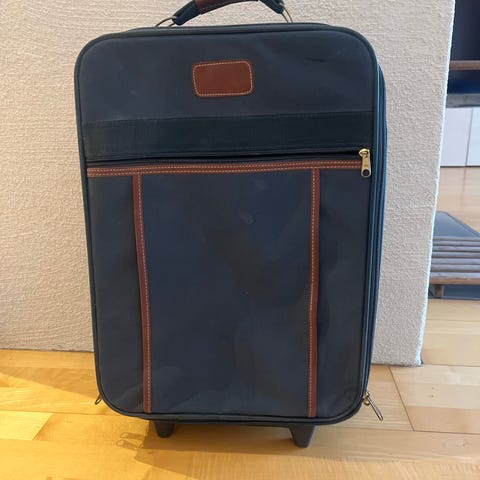 Pieni musta Migant-merkkinen matkalaukku. Vähän kulumaa ja käytön jälkiä pohjassa.