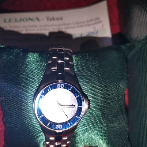 En muista et olisin käyttänyt, on pyörinyt korurasiassa mutta patteri loppu. Katso muutkin ilmoitukset on muitakin kelloja myynnissä.