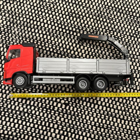 Emek Volvo FH lavettiauto lavetti leikkimätön kaivuri vanhempi irtoparipyörillä ei leikitty sekä sorapuoliperäkärry ei leikitty ei puutteita
