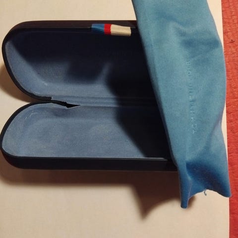 Tommy Hilfiger silmälasirasia, jossa on kova ulkokuori. Musta väri, valmistettu kestävästä materiaalista.