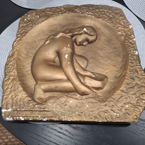 Taiteilija Kalervo Kallion (presidentti Kyösti Kallion pojan) Marjanpoimija kipsireliefi.
