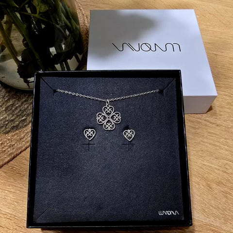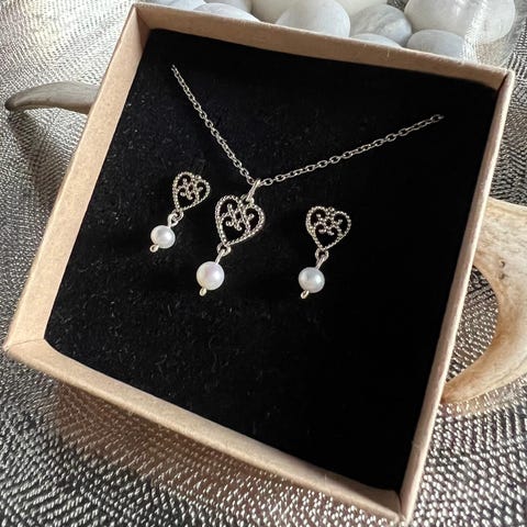 Myyntiin Lumoava Huomen hopeiset korvakorut ja kaulakoru. Voin myös postittaa.