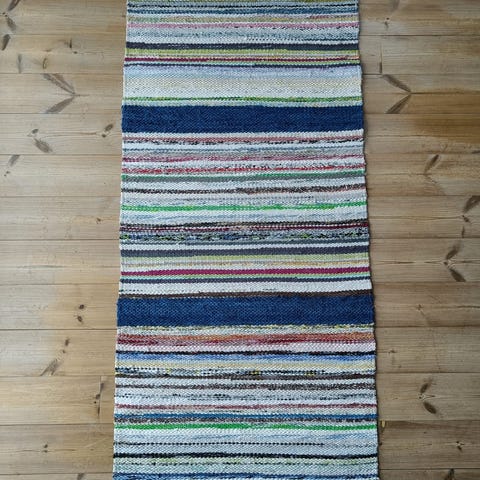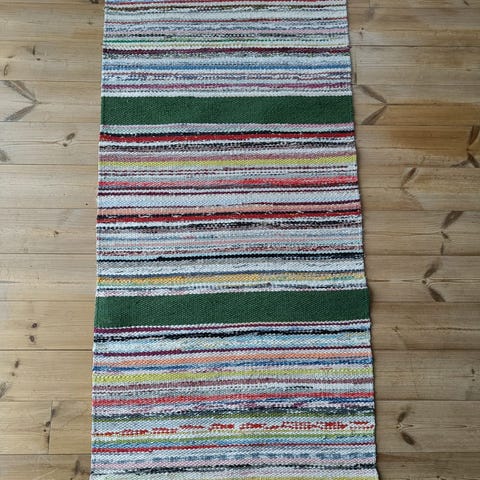 Myydään uusia, kotimaisena käsityönä valmistettuja 100% puuvillaisia räsymattoja. Matot on kudottu tiiviiksi, minkä ansiosta ne ovat tukevia ja säilyttävät ryhtinsä erinomaisesti vuodesta toiseen. Kyseessä on kestävä ja pitkäikäinen valinta. Kestää hyvin pesua sekä kulutusta. Maton leveys on 75cm.