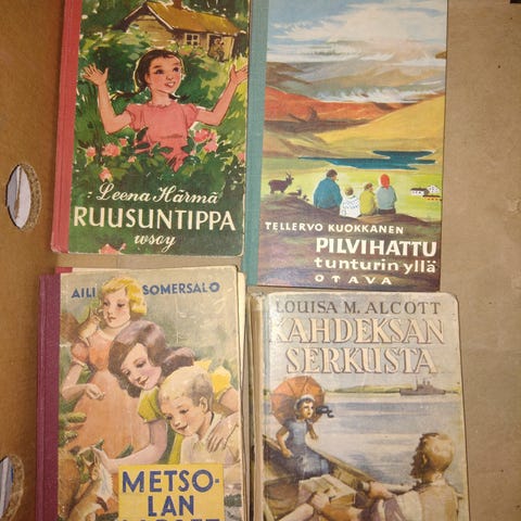 Vanha tyttökirja vuodelta 1938. Kirjastopoisto, muovitettu, selkämys vinossa, kaikki sivut tallella ja kiinni. Nouto/ toridiili.