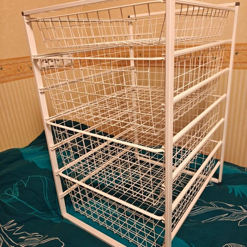 Myydään 2 kpl Elfa-koripaketteja. Lisäksi on myynnissä 2 poikkitukea ja muutama ylimääräinen lankakori.