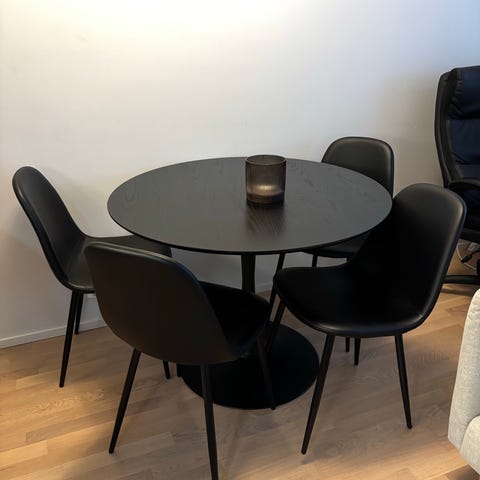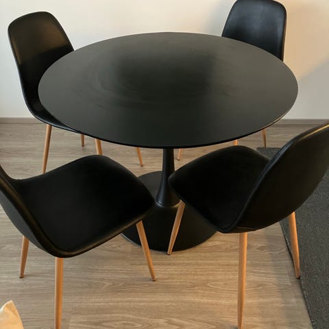 Pyöreä pöytä, valkoinen väri. Pöydän materiaali ei ole tiedossa. Sopii erilaisiin tiloihin, kuten keittiöön tai työhuoneeseen.