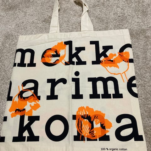 Marimekko kangaskassi, valmistettu 100% kierrätetystä puuvillasta. Kassi on unisex-mallia ja sopii monipuoliseen käyttöön. Vaalean liila - luonnon valkoinen/beige. Ilmalassa.