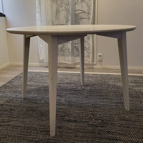 Myydään puinen pyöreä jämäkkä ruokapöytä.