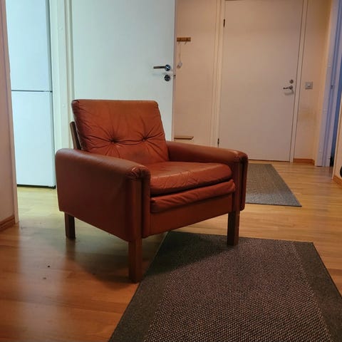 Vanha 60-luvun nahkasohva. Muistuttaa Yrjö Kukkapuron Ateljee sohvaa mutta ei tietääkseni ole. Kaupanpäälle nojatuoli. Vain nouto. Tarjoa
