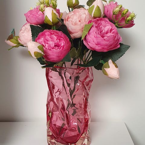 Myydään punainen koriste-esine. Korkeus 8 cm, halkaisija noin 16 cm