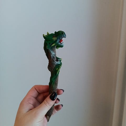 Otsikon mukainen lohikäärme pulloteline. Mitat: korkeus 15cm, leveys 15cm ja syvyys 15cm.