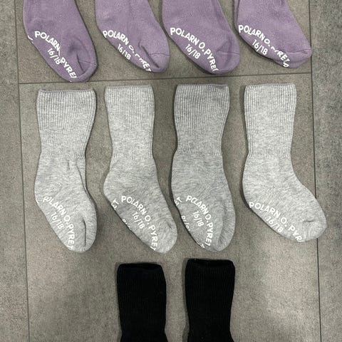 Polarn o pyret jarrusukkia 4 paria koossa 19/21 ja 2 pari 16/18 koossa. Sukat on pehmeät viellä, eikä uudelle häpeä