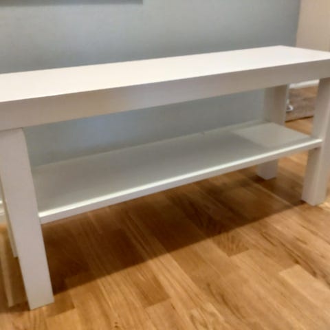 Ikealainen hyllykkö... en muista onko oikeasti tv-taso vai hyllykkö... Ollut meillä molemmin päin. Nykyisin toiminut istuintasona matoilla vuorattuna. Nämä ei kuulu kauppaan. Pelkkä hyllykkö.