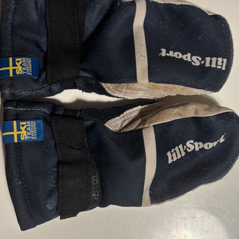 Yhdellä jälkeläisellä vain hiihtokäytössä olleet Lill-Sportin Taro Lobster käsineet.