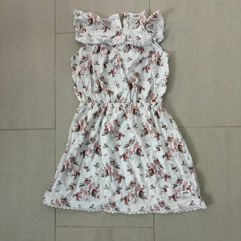 Newbien mekko. Edessä puunapit ja kauniit pitsisomisteet.