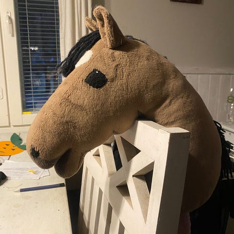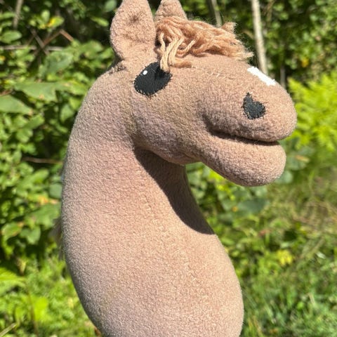 Hintana toimii 55€ +postit tai haku seinäjoelta. Heppa on hyvässä kunnossa, tekijästä ei tietoa, mutta hyvin ommeltu eikä ole reikiä. Hevonen on kepitetty, ja keppi on täydellisen pituinen esimerkiksi esteille. Varusteita ei tule mukaan.
