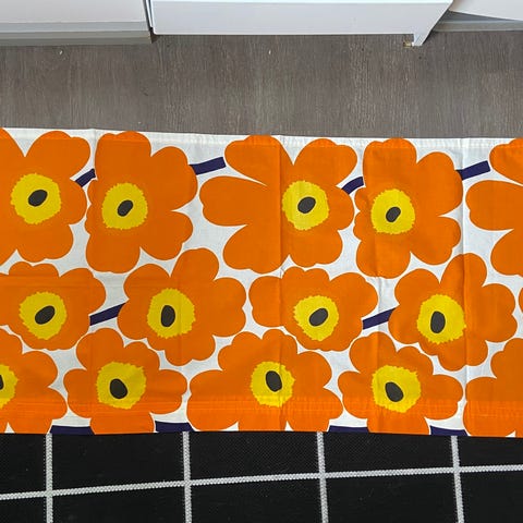 Marimekko Unikko kappaverho koko 145x32cm, vain käsin harkittu.