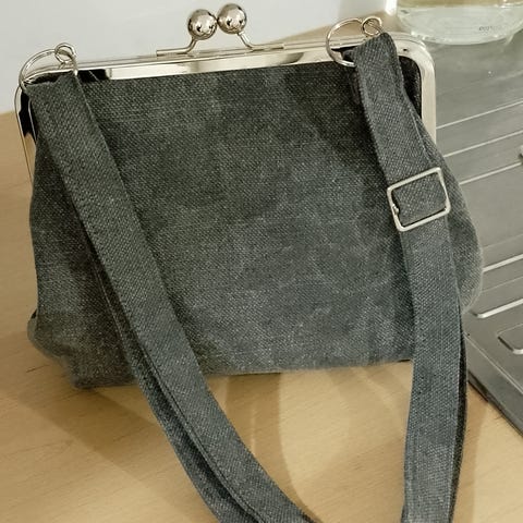 Myydään vahvasta sisustuskankaasta tehty harmaa pussukkalaukku jossa erillinen vuori ja välissä silitetty vanu, säädettävä samasta kankaasta tehty vahva hihna, maksimipituus 139 cm. Sangan leveys 21 cm. Laukun korkeus 21 cm.
