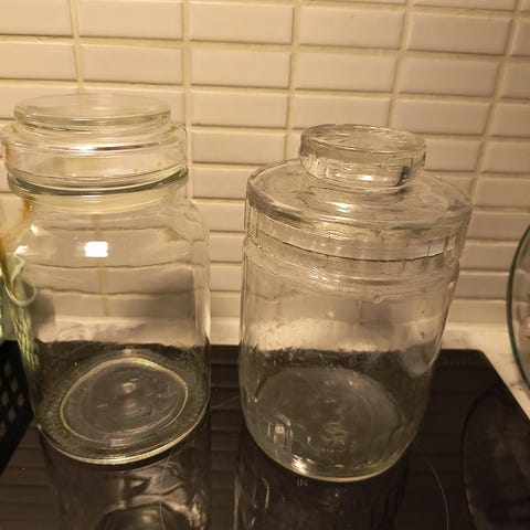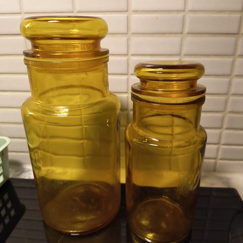 2 kpl kannellisia säilytyspurkkeja. Käsinmaalattu kukkakuviointi kyljissä ja kansissa. Hinta yhteensä 5e.
