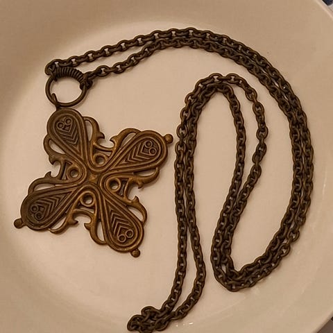 Räisälän pronssi riipus, Kalevala. 60cm. Paino 12g ketjuineen.