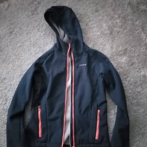 Myydään hupullinen softshell-takki koossa 164. Soveltuu käytettäväksi myös XS/S-koon aikuiselle.
