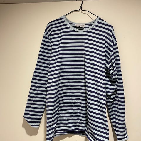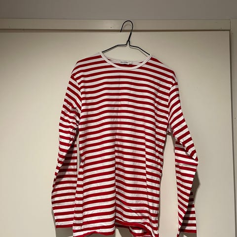 Marimekko M miesten pitkähihainen paita punavalkoraidallinen puuvillaa