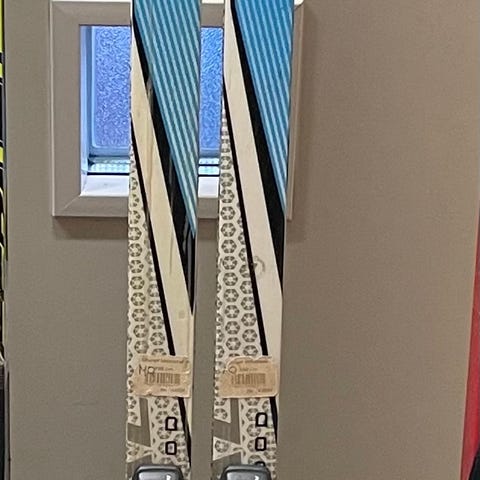 Tarjolla siniset karhun 190 cm sekä keltaiset peltosen 200 cm perinteisen tyylin sukset sns siteillä. Hp. 40 e/pari