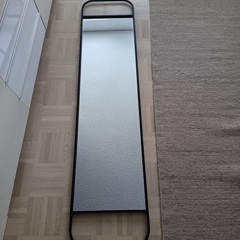 Hyväkuntoinen peili mustilla kehyksillä. Voi kiinnittää pysty- tai vaakasuunnassa. Korkeus 130cm, leveys 90cm. Kissatalous. Nouto Jankasta.