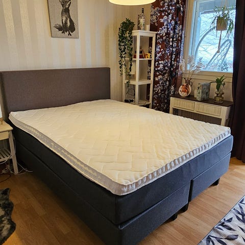 Kuvan vuodevaatteet ja sängyn päädyssä oleva päätypenkki myydään erikseen. Sänky on kokeiltavissa ja esillä myymälässämme Leväsellä kauppakeskus Cantin myymälässämme. (Leväsentie 2b, 70700 Kuopio)