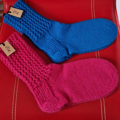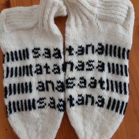 Kudon näitä tekstisukkia tilauksesta Novitan Nalle-langasta (mahtuu talvikenkään).