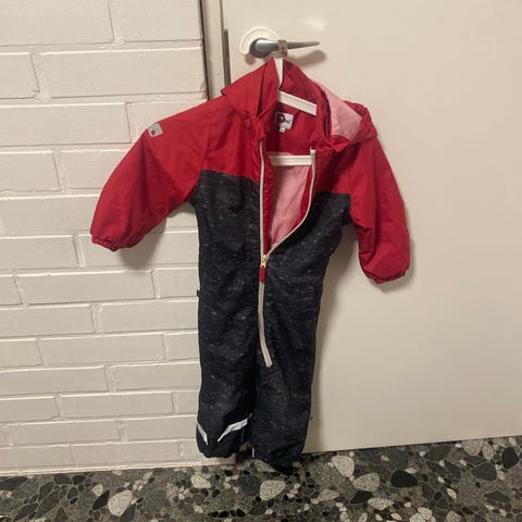 Lahjoitetaan 110 cm:n kokoinen haalari. Polvissa on normaalia kulumaa, mutta kunto on hyvä. Pesty ja puhdas.