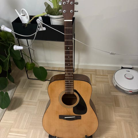 Osumaa saanut mutta täysin toimiva teräskielinen. Haavoistaan huolimatta vain vähän käytetty, eli nauhat on hyvässä kondiksessa ja niin edespäin. Kuulostaa omaan korvaan siltä miltä pitääkin.