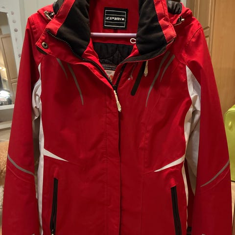 Icepeak naisten takki, koko 40, väriltään pinkki. Takissa on huppu ja vetoketju kiinnitys.