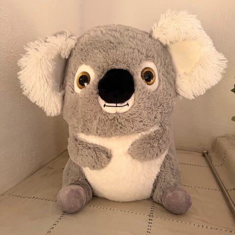 Pehmolelu koala-hahmo harmaassa värissä. Sopii lasten leikkeihin ja sisustukseen.