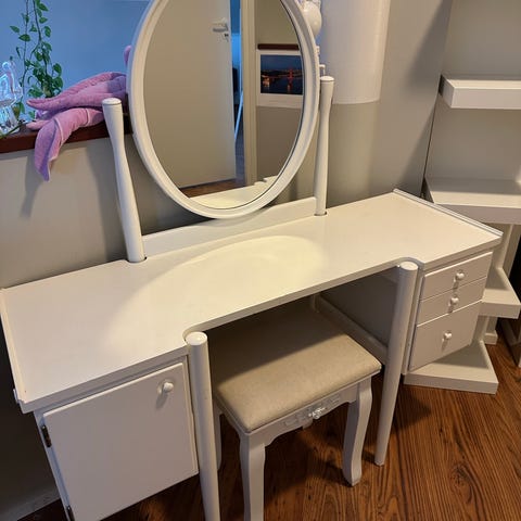 Jysk meikkipöytä valkoinen peilillä ja laatikoilla