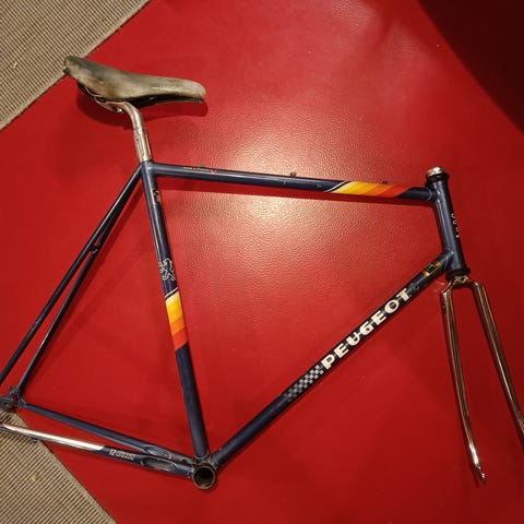 Yksivaihteinen jalkajarrullinen peugeot arviolta 1980-luvulta. 46:16 välitys. Runko n. 56, sopiva 175-180 kuskille.