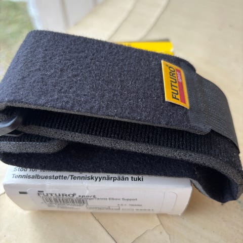 Erittäin hyvässä kunnossa oleva Futuron tenniskyynärpäätuki. Auttaa ehkäisemään ja hoitamaan tenniskyynärpää oireita. Nouto Tapiolasta tai postitus.